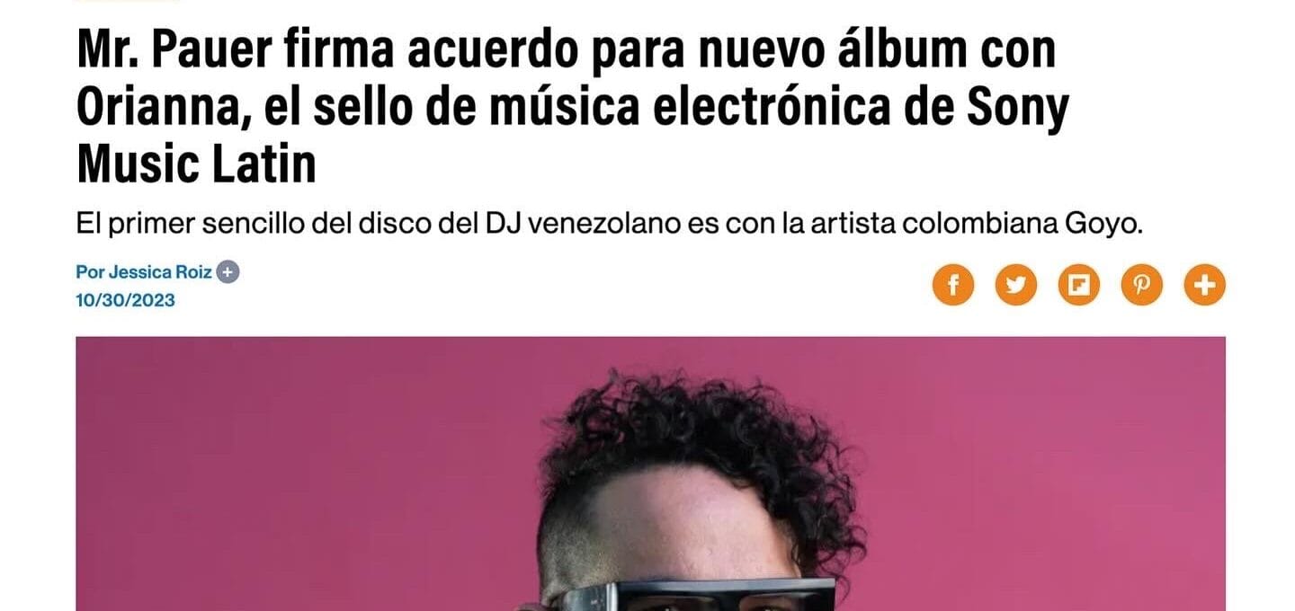 Mr. Pauer has teamed up with Orianna, Sony Music Latin’s electronic label, for the release of his upcoming studio album, Inevitable, Billboard can exclusively announce today (October 30).